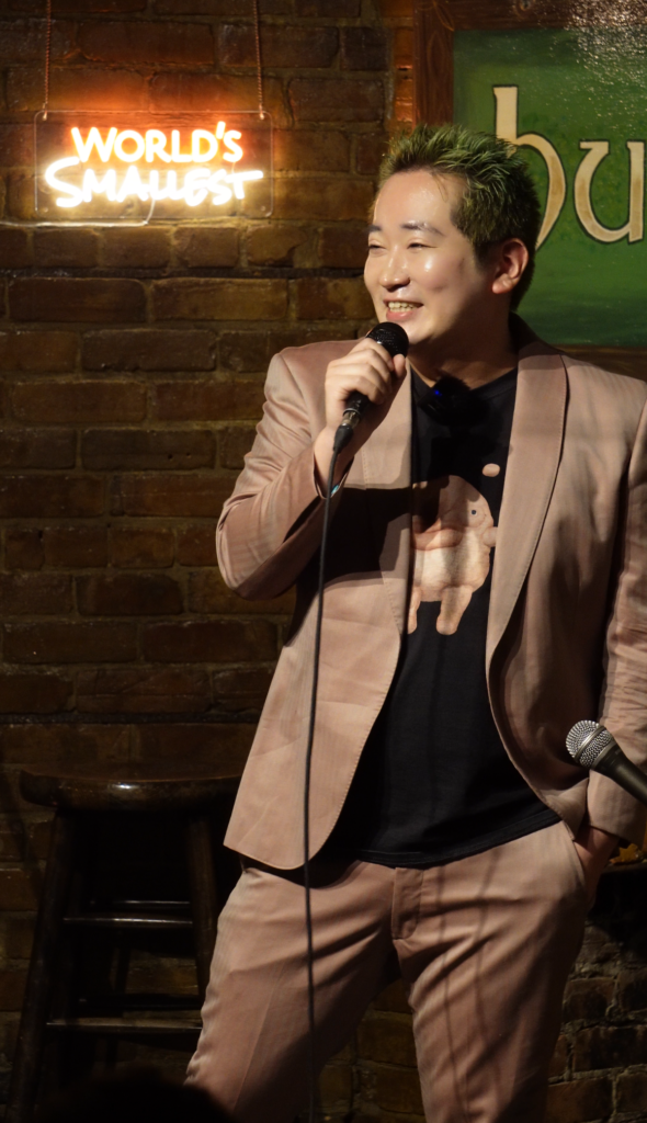 Kohei Higashikawa is a Japanese writer and stand-up comedian who began performing in Montreal. His work explores the concept of “everyday totalitarianism”—not through the lens of governments or politics, but through entertainment, conversation, and consumption. In his view, society governs people, entertainment tames their thoughts, and even language itself becomes standardized. Yet, this is not imposed by force; rather, it is a reality that we willingly accept.